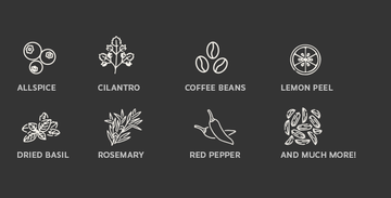 WHOLE SPICES: Allspice - whole, Black cumin seeds, Caraway seed, Chili, dried - piquin, Chili, dried - chiltepin, Juniper berries, Lemon peel - dried and minced, Orange peel - dried and minced, Red pepper - crushed